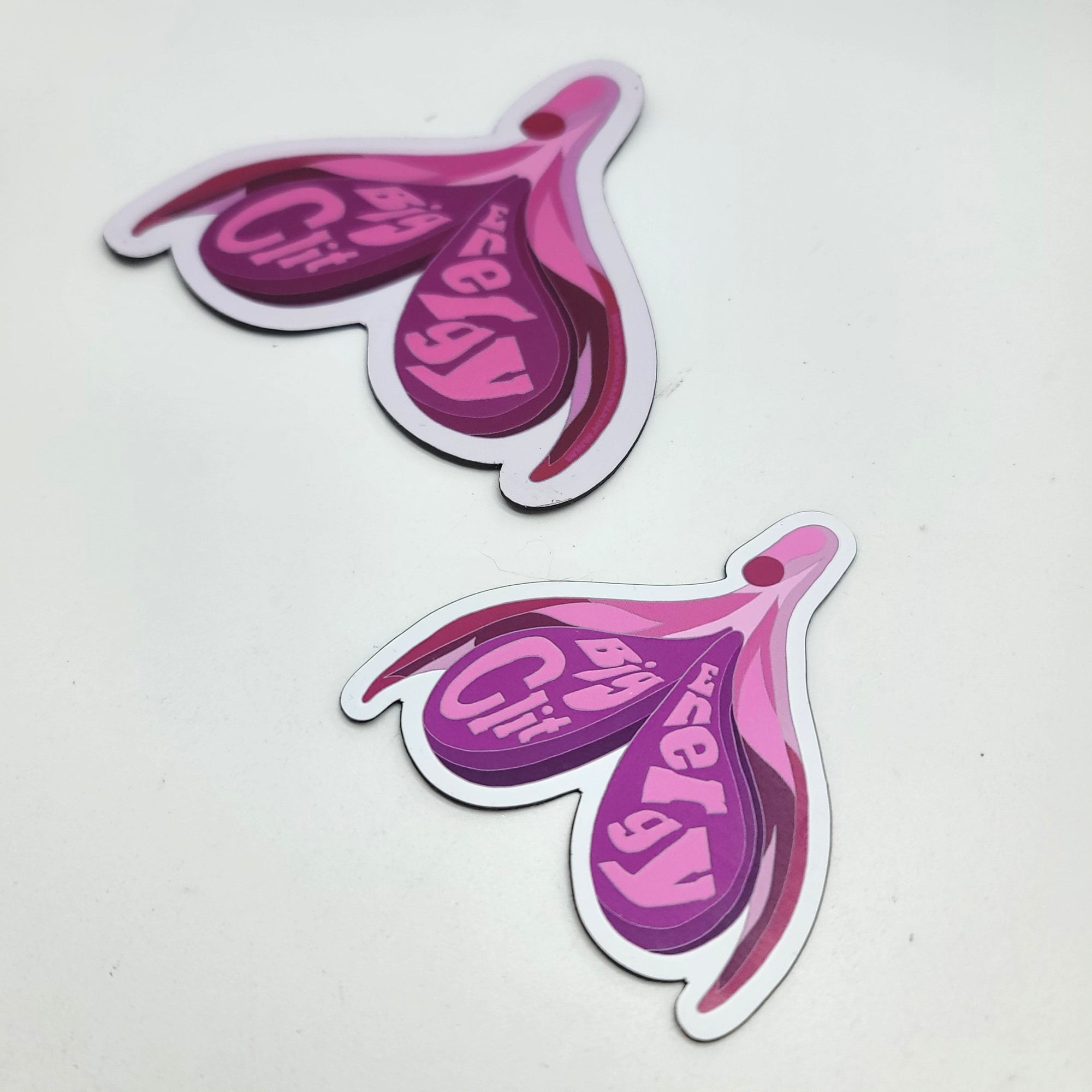 A Mixtape Your Life original, designed as an abstract anatomically accurate illustration of the clitoris, this retro-inspired design uses layered pink and purple tones with stylized text that says Big Clit Energy