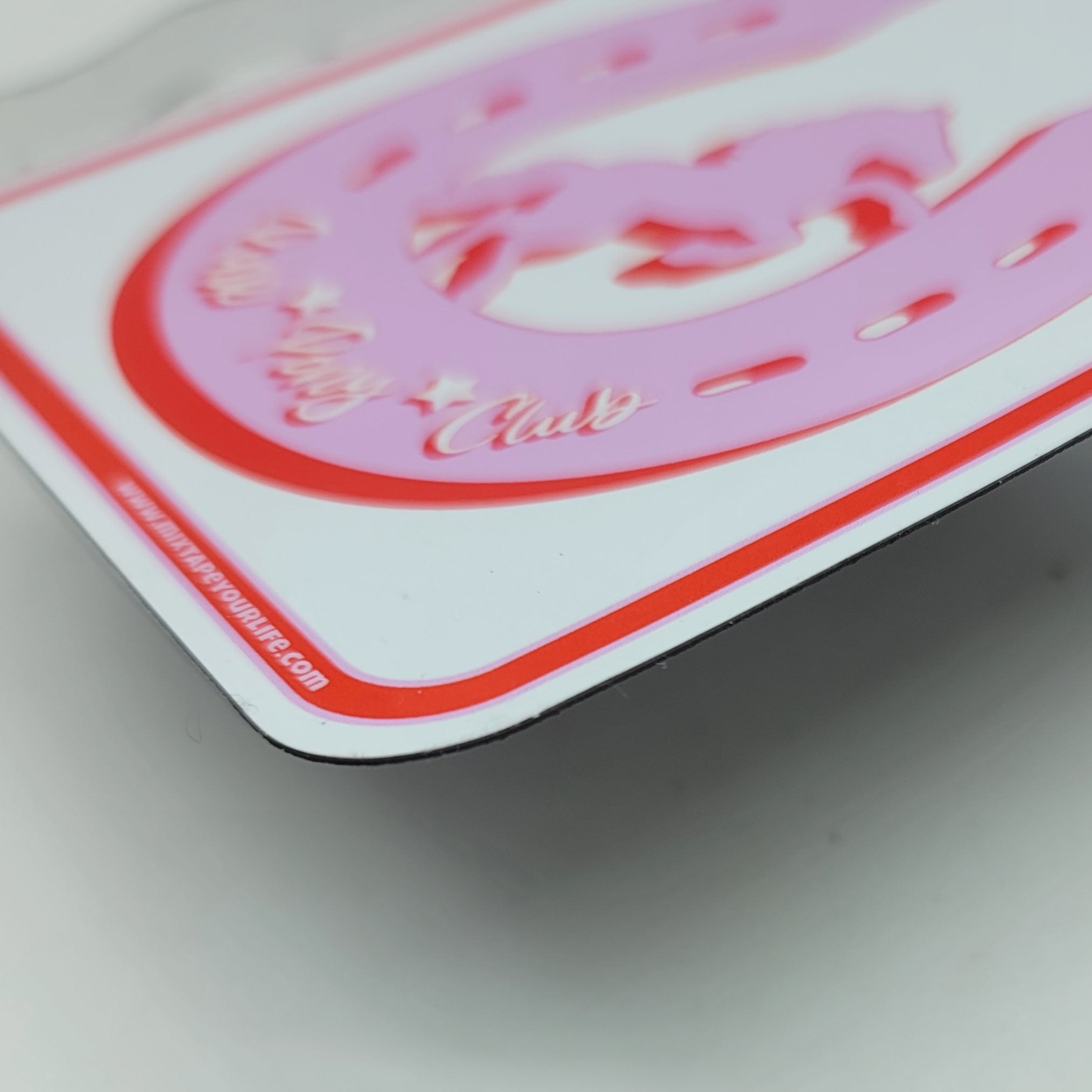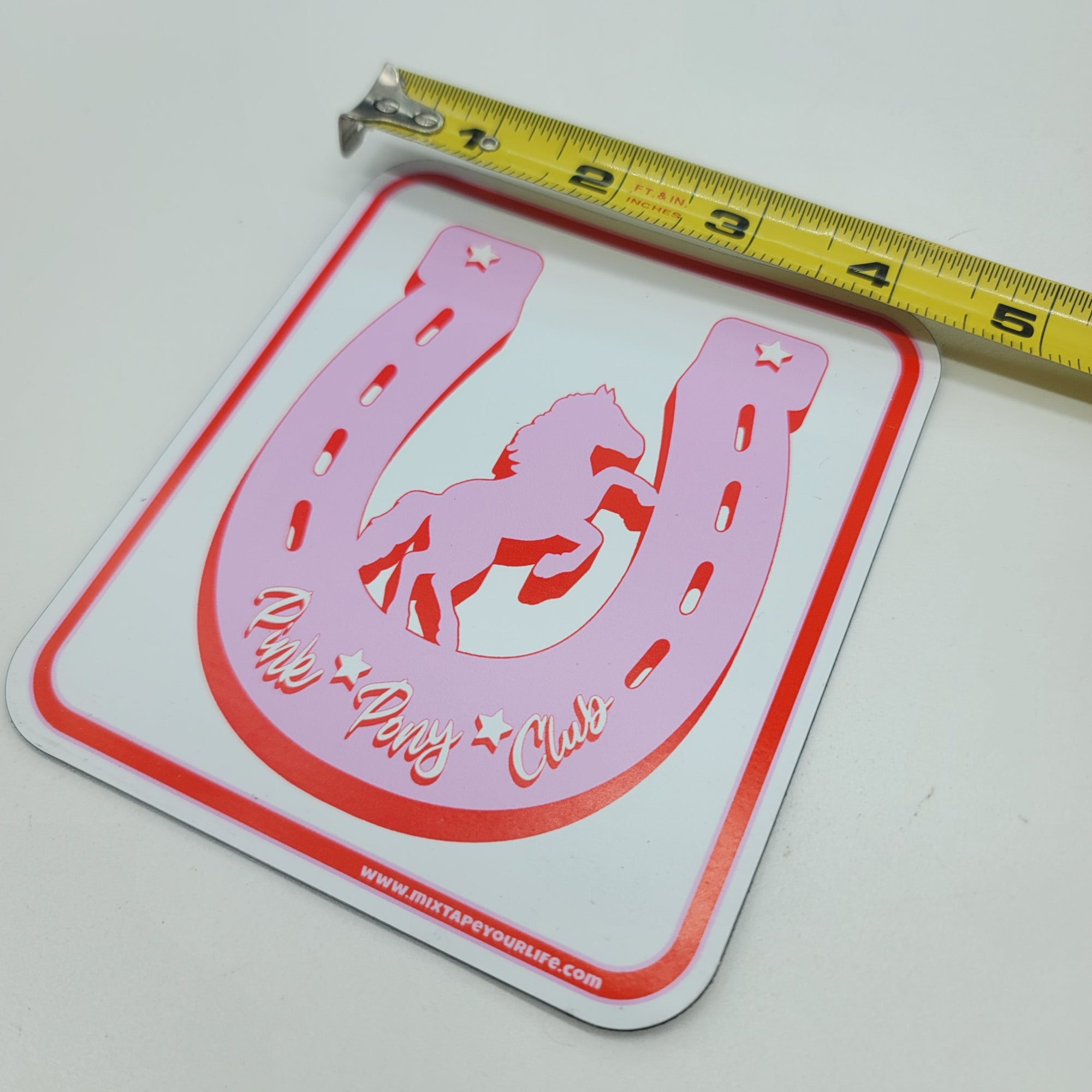 Grab your boots and saddle up, baby, we’re going down to the Pink Pony Club! This XL premium refrigerator magnet is a shimmering tribute to the cult-favorite anthem by Chappell Roan. Designed in shades of bubblegum pink and cherry red, it features a prancing pony framed by a lucky horseshoe and bold script that proudly declares your membership in the Pink Pony Club. Measures a whopping 4.5"x5"