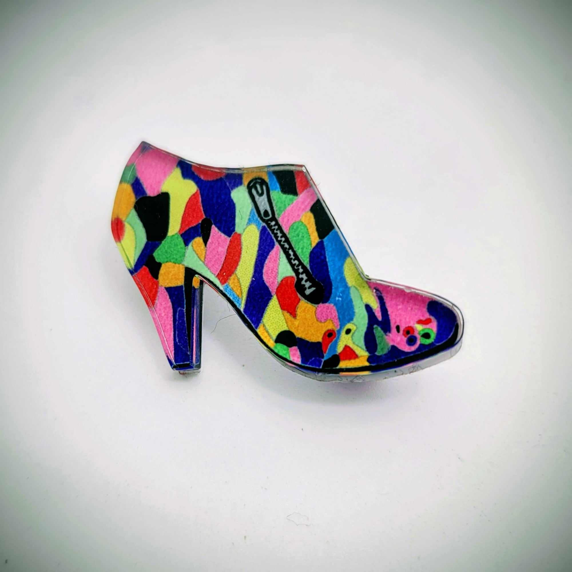 This handmade lapel pin is sublimation printed on acrylic, Measures 2" wide and 1.3" tall.