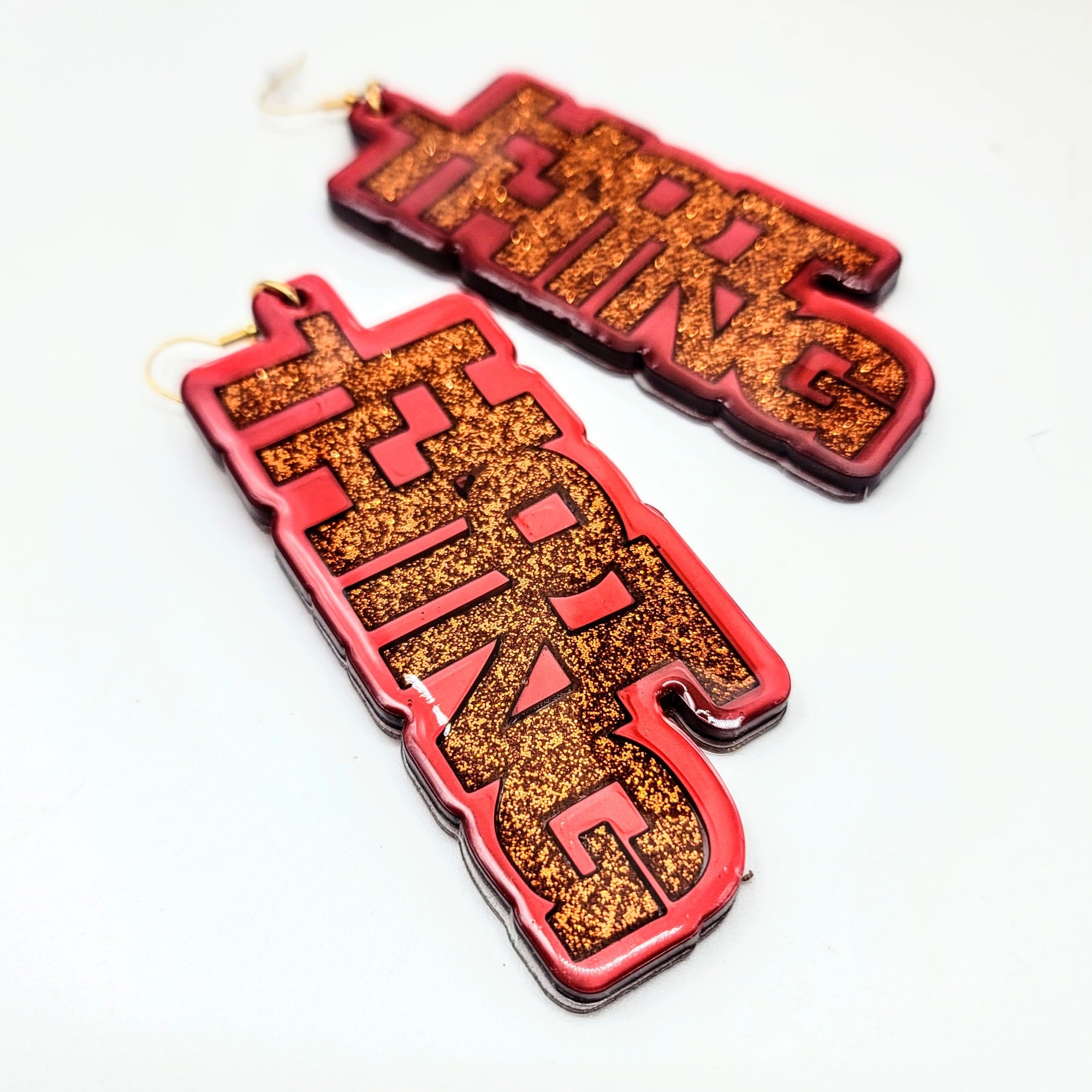 Made from vibrant copper glitter acrylic metallic red acrylic and resin domed for an extra glossy pop, these large statement earrings measure approximately 1.6" wide and 3.5" tall!