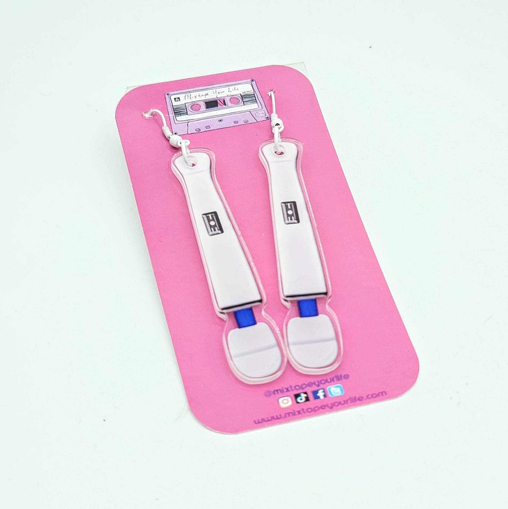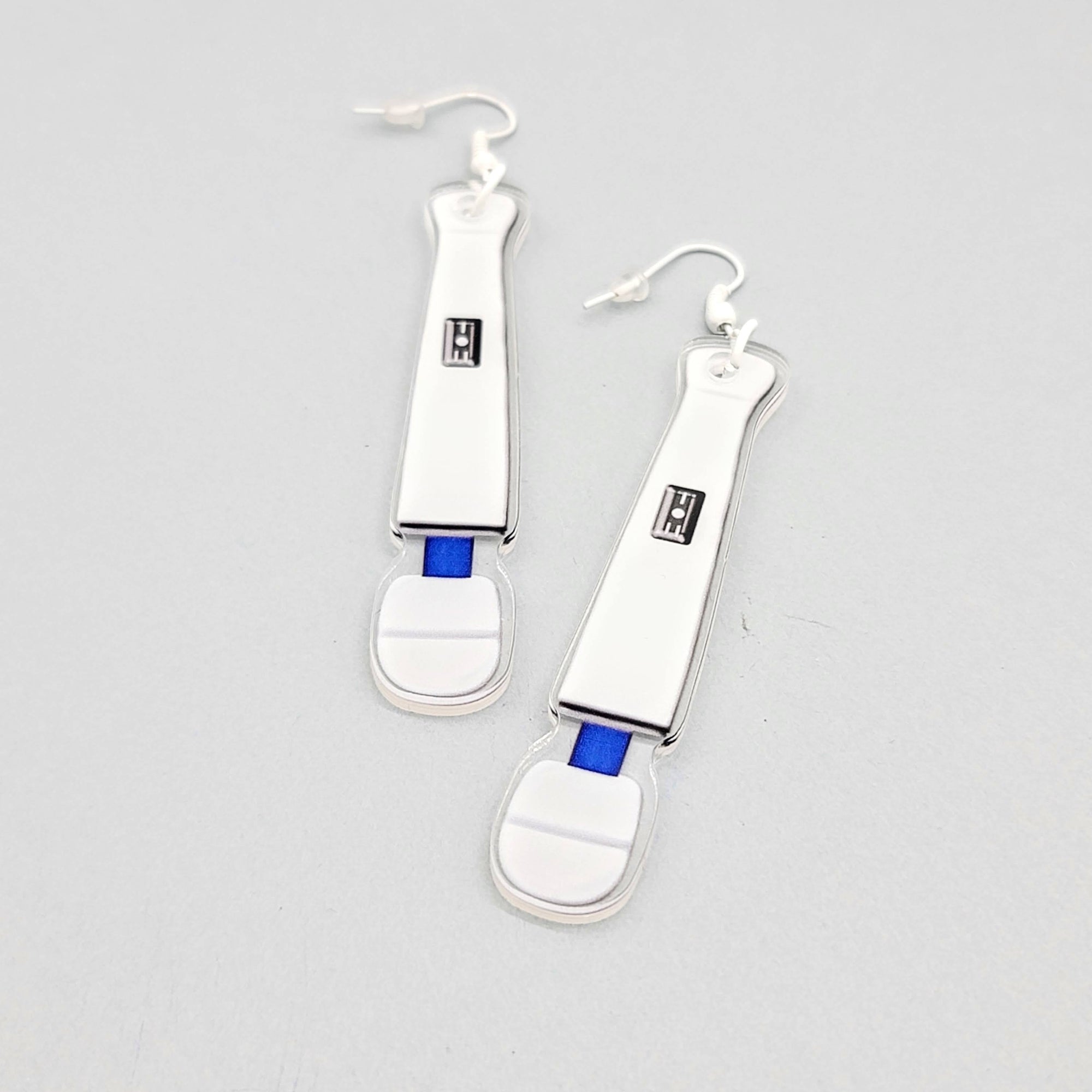 This new mini sized version measures about 2" long and .50" wide, professionally printed acrylic charms with white enamel plated iron earring hooks and matching jump rings